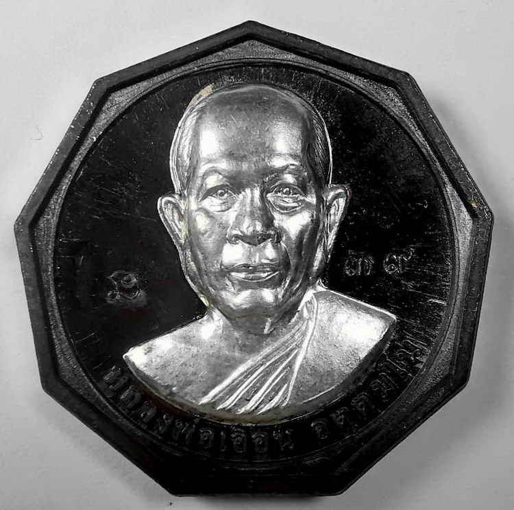 ( เคาะเดียว เลขสวย 39 สภาพเดิม100% ) เหรียญเก้าเหลี่ยม เนื้อนวะ หน้ากากเงิน หลวงพ่อเอื้อน วัดวังแดงใต้ อยุธยา ปี 2549 ตอกโค๊ด และหมายเลขชัดเจนครับ