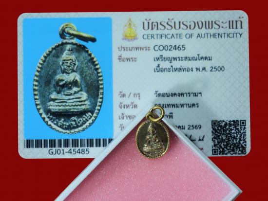 บัตรสมาคม +เหรียญพระพุทธสมณโคดม พิมพ์เล็กทรงเม็ดแตง เนื้อทองแดงกะไหล่ทอง สภาพสวยเดิม กะไหล่แห้งตามอายุพระยุคกึ่งพุทธกาล ความสำคัญ: จัดสร้างขึ้นในปี พ.ศ. 2500 ณ วัดอนงคาราม กรุงเทพฯ