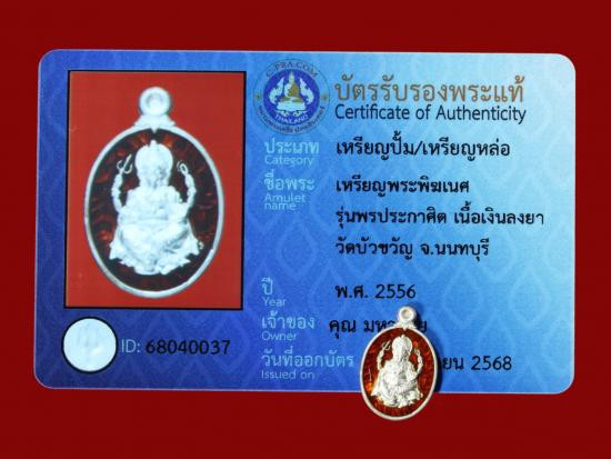 มีบัตรรับรองพระเครื่องของ