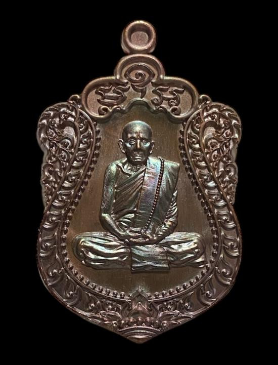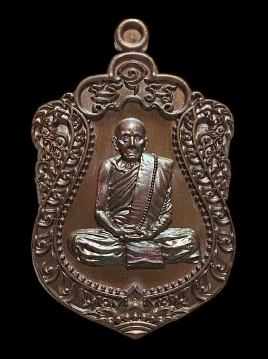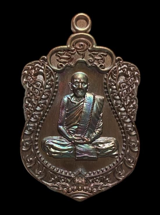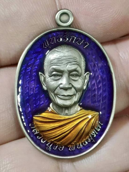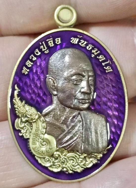 เหรียญอยู่เย็น เป็นสุข หลวงปู่จื่อ วัดเขาตะเงาะอุดมพร จ.ชัยภูมิ เนื้อทองทิพซาติน พื้นม่วง หน้ากากนวะ โค๊ต จ หมายเลข 22