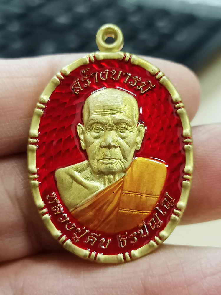 เคาะเดียวแดง เหรียญเมตตามหาเศรษฐี หลวงพ่อพัฒน์ บุญญากรรมโม เนื้อทองเหลืองพ่นทรายลงยา