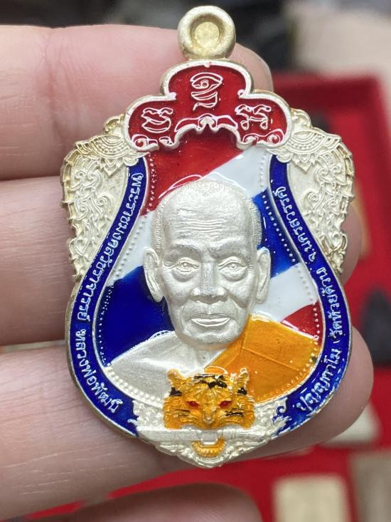 หลวงพ่อรวย วัดตะโก จ.อยุธยา เนื้อเงินลงยาหน้าทองคำ |