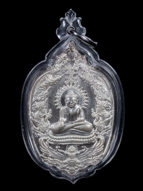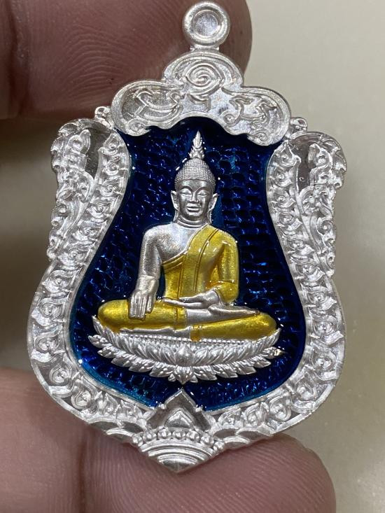 เหรียญพระเจ้าใหญ่อินทร์แปลง เนื้อเงินลงยา หมายเลข 47 สวยกล่องเดิม |