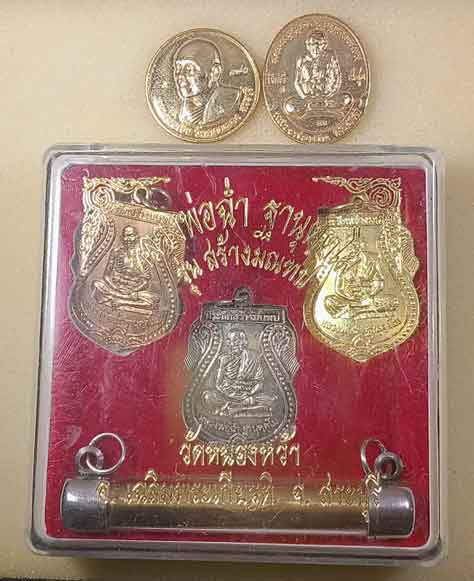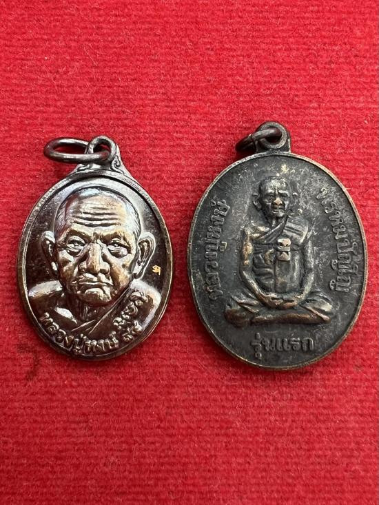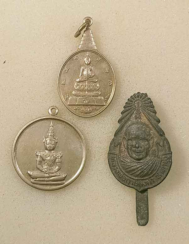 เหรียญ + สมเด็จ หลวงพ่อสมบุญ วัดลำพันบอง สุพรรณบุรี + เหรียญหลวงพ่อดำ วัดลาดสิงห์ สุพรรณบุรี |