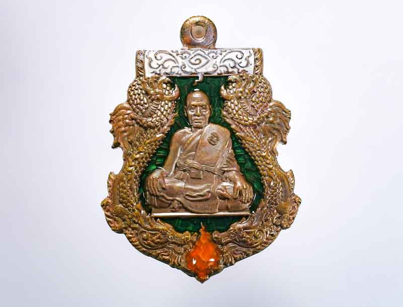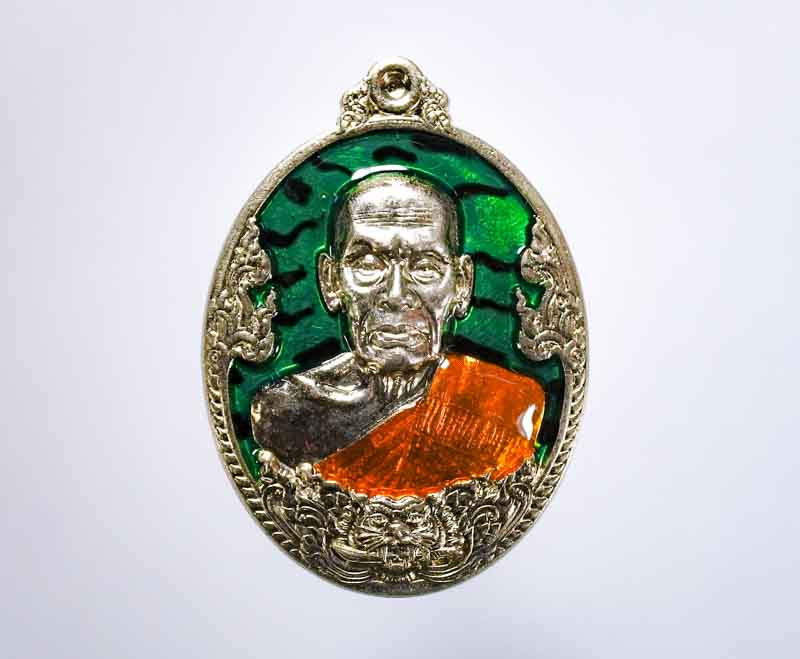+++ เหรียญเนื้อเงินลงยาสีน้ำงิน หลวงปุ่คร่ำ กล่องเดิม +++ สีเขียวเหนี่ยวทรัพย์ครับหายาก |