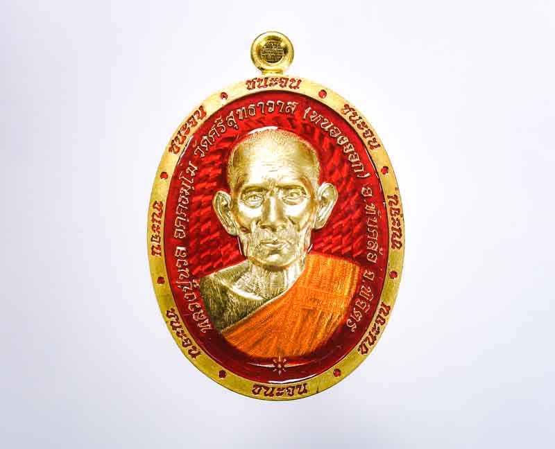 เหรียญสารพัดเจริญ เนื้อทองทิพย์ผิวรุ้ง ลงยาส้ม ปี2566 หลวงพ่อช้าง วัดจุกเฌอ แปดริ้ว (---A45---) |