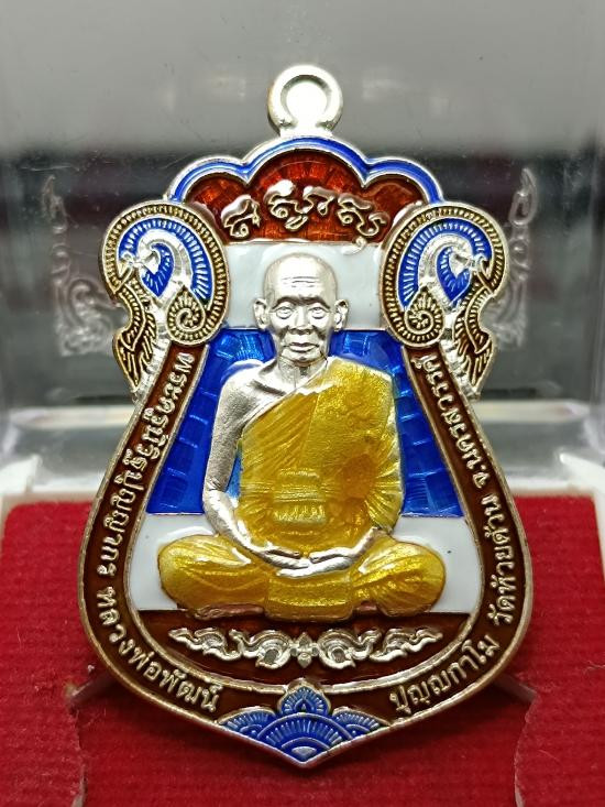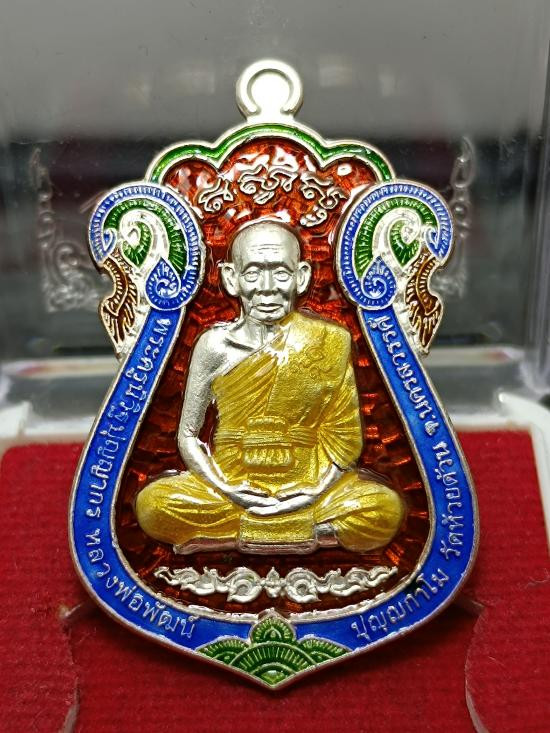 เหรียญเสมาเลื่อนสมณศักดิ์ หลวงพ่อพัฒน์ วัดห้วยด้วน จ.นครสวรรค์ เนื้อเงินหน้ากากทองคำลงยาขอบ เลขโค๊ตนัมเบอร์ ๒๙๙๘ ซีนเดิม ๆ พร้อมกล่อง |