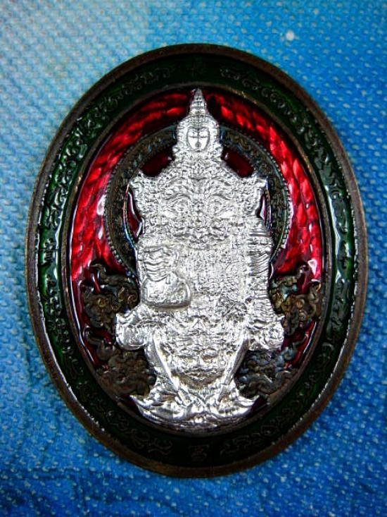เหรียญท้าวเวสสุวรรณ รุ่นโชคดีมหามงคล เนื้อนวะโลหะลงยา หน้ากากเงิน หลวงพ่อพัฒน์ วัดห้วยด้วน (---A19---) |