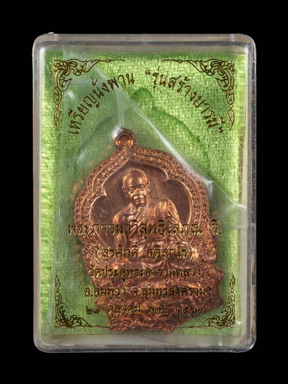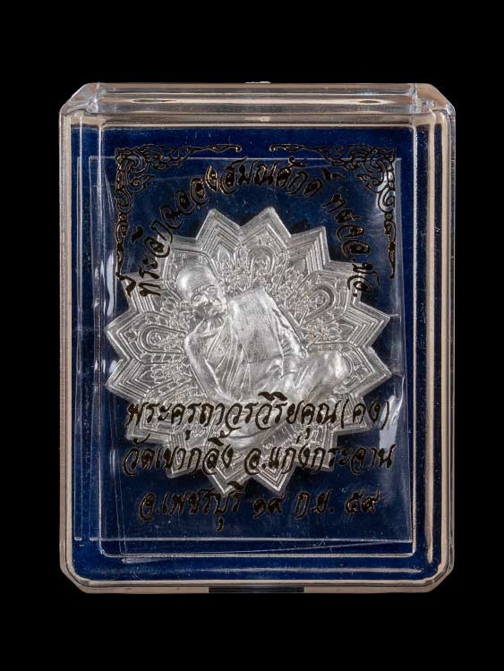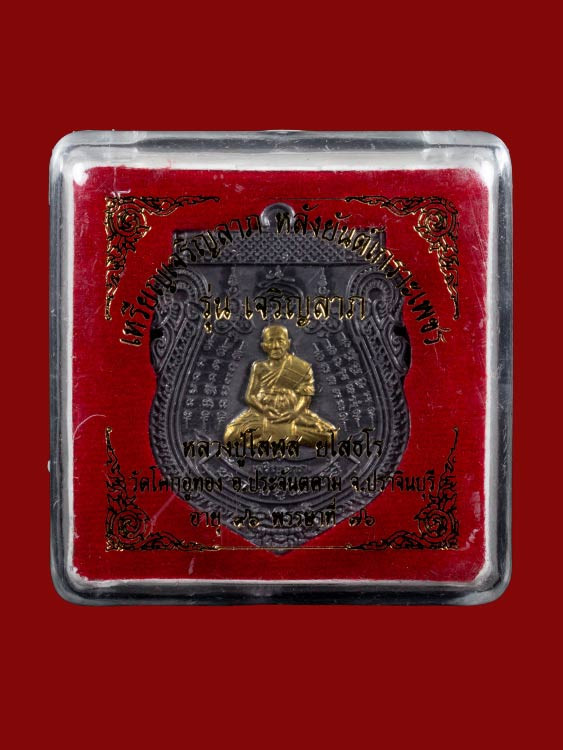 เหรียญหลวงพ่อสำเร็จศักดิ์สิทธิ์ จ.สระบุรี รุ่นสำเร่ำ เนื้อชุบแบล็คโรเดียมหน้ากากชุบทองลงยาป้ายขาว ตอกโค๊ต ตอกหมายเลข 29 |