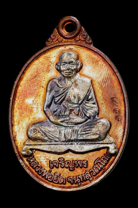 หลวงปู่หยอด วัดแก้วเจริญ รุ่น ทรัพย์ล้นเหลือ ปี 34 ทองแดง สวยๆ |