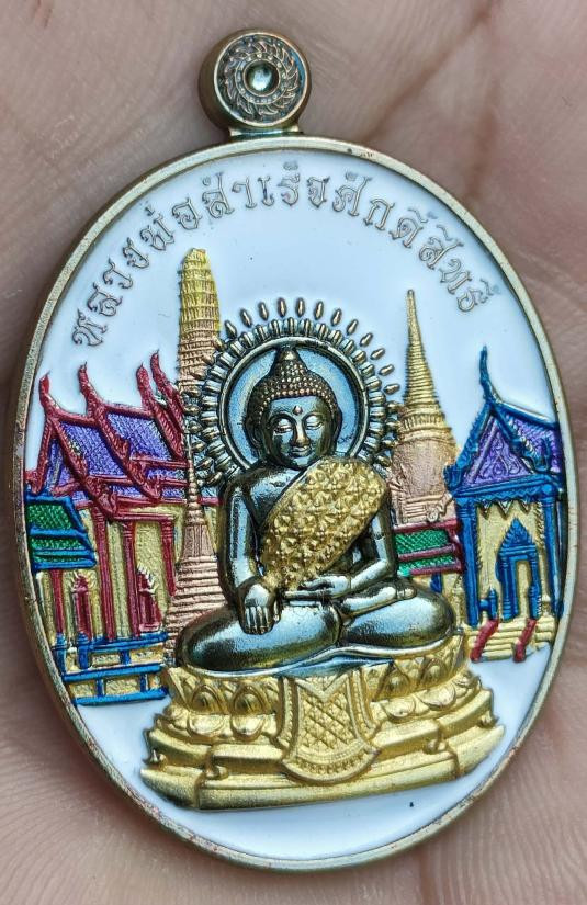 เหรียญหล่อฉลุ (บรรจุกริ่ง) พระพุทธสิหิงค์ "กริ่งวินยาภรณ์ 26 ศตวรรษ" วัดพระมหาธาตุ จ.นครศรีธรรมราช เนื้อเงินลงยาลายธงชาติ เบอร์ 253 พร้อมกล่องเดิมครับ (น้ำหนัก28.24กรัม) |