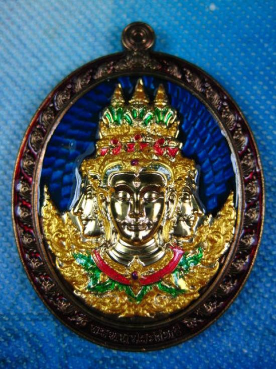 เหรียญ พระพรหม รุ่นพรหมประสิทธิ พระอาจารย์เลี้ยง วัดจอมเกษ จ.อยุธยา เนื้อมหาชนวนมวลสาร หน้ากากชุบทอง ลงยาเครื่องทรง ลงยาพื้นน้ำเงิน หมายเลข ๓ มาสเตอร์พีส (---A98---) |