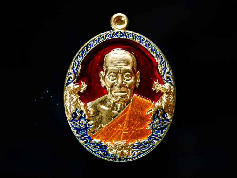 เหรียญหลวงพ่อรวย วัดตะโก รุ่นเสมาบารมี (ลายเซ็น) กะไหล่ทองลงยา ปี 2554 ตอกโค๊ต รวย + เลข ๓๔๑ จ.อยุธยา พร้อมกล่อง |