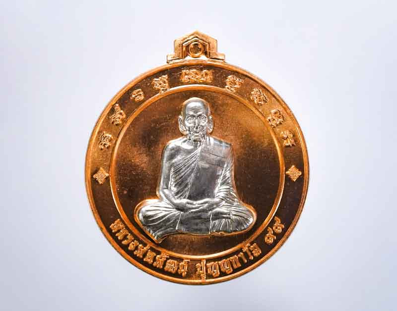 เหรียญหลวงพ่อเปิ่น วัดบางพระ เนื้อทองแดง หลังพระนามาภิไธยย่ิ ส.ธ. ปี 2537 กล่องเดิม |
