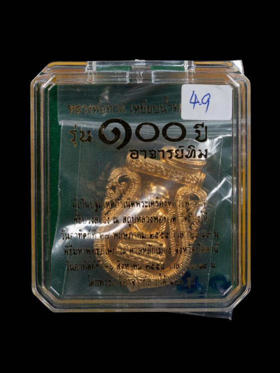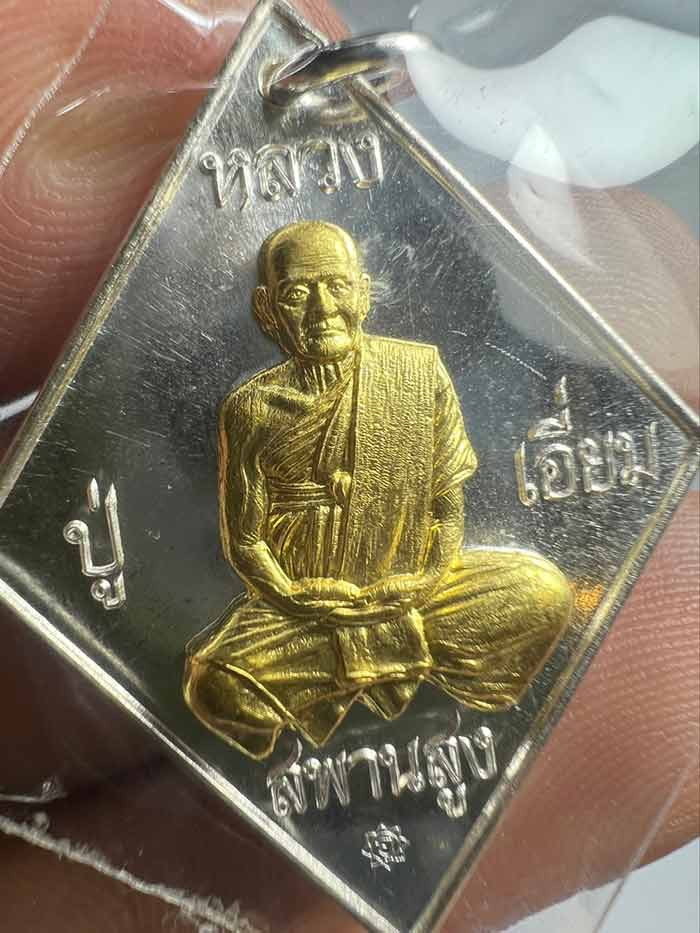 วัดใจ หลวงปู่เอี่ยม วัดสะพานสูง นนทบุรี รุ่นบูรณะอำเภอปากเกร็ด (เนื้อเงินหน้ากากทองคำ) เลข247 สภาพสวยกล่องเดิม ยังไม่แกะซีล |