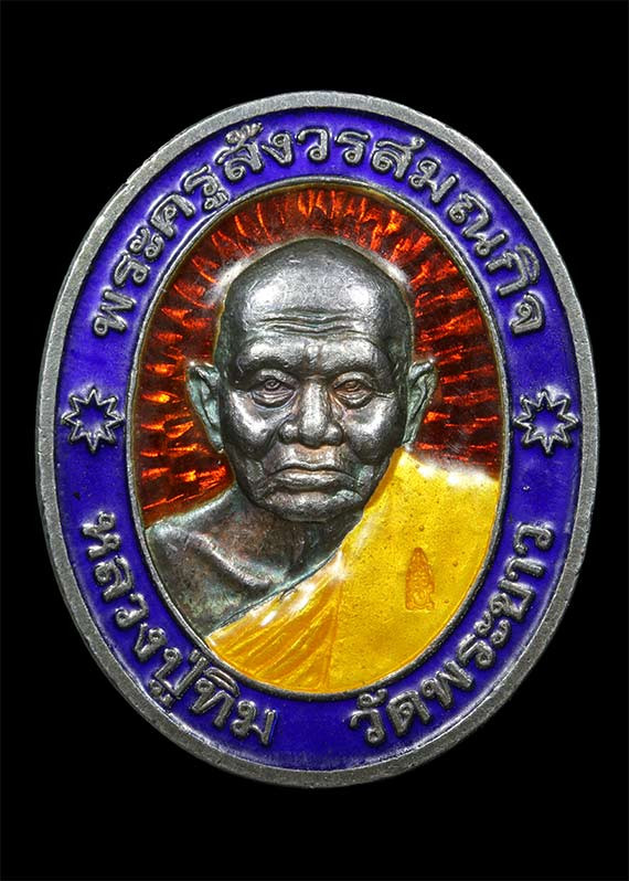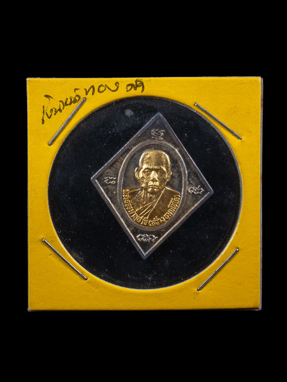 เหรียญทองหมื่นยันต์ หลวงพ่อทอง วัดบ้านไร่ เนื้อเงินลงยา เลข 87 เคาะเดียว |