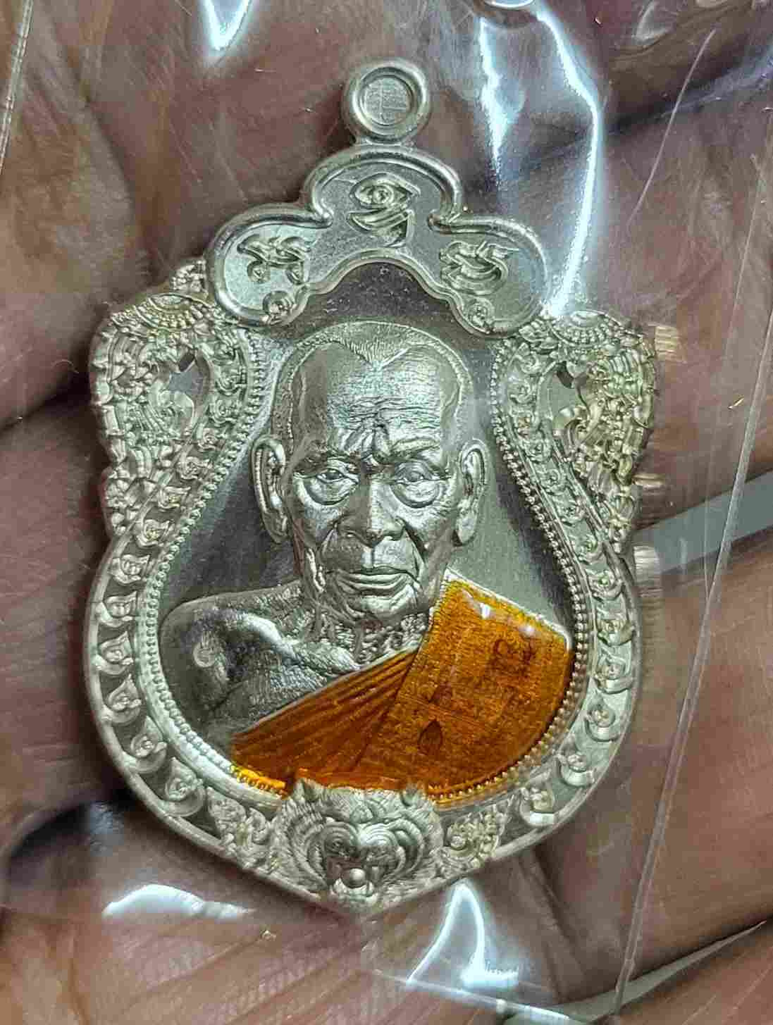 เหรียญเจริญพรสังฆาฏิ หลวงปู่จื่อ ออกวัดแจ้งนอกปี 59 เนื้อเงินลงยา เลข 41 เคาะเดียว |