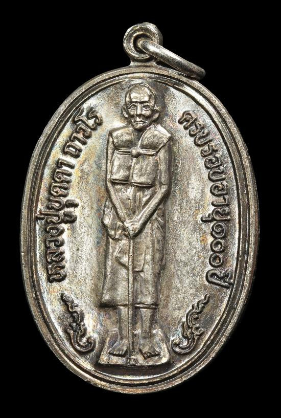 เหรียญยืนครบ 100 ปี หลวงปู่บุดดา ถวโร วัดกลางชูศรีเจริญสุข จ.สิงห์บุรี ปี 2536 เนื้อเงิน |