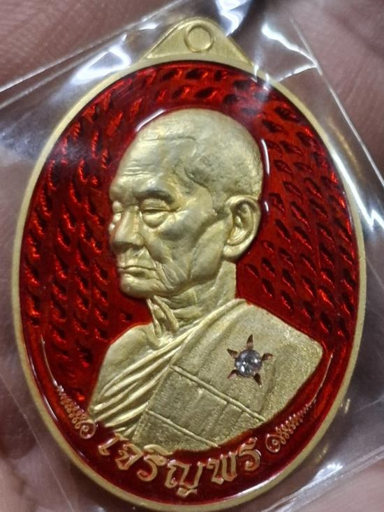 เหรียญเจริญพรหันข้าง หลวงปู่บุญมา วัดเขาแก้วทอง นำฤกษ์ ลงยาแดง ฝังเพชร |