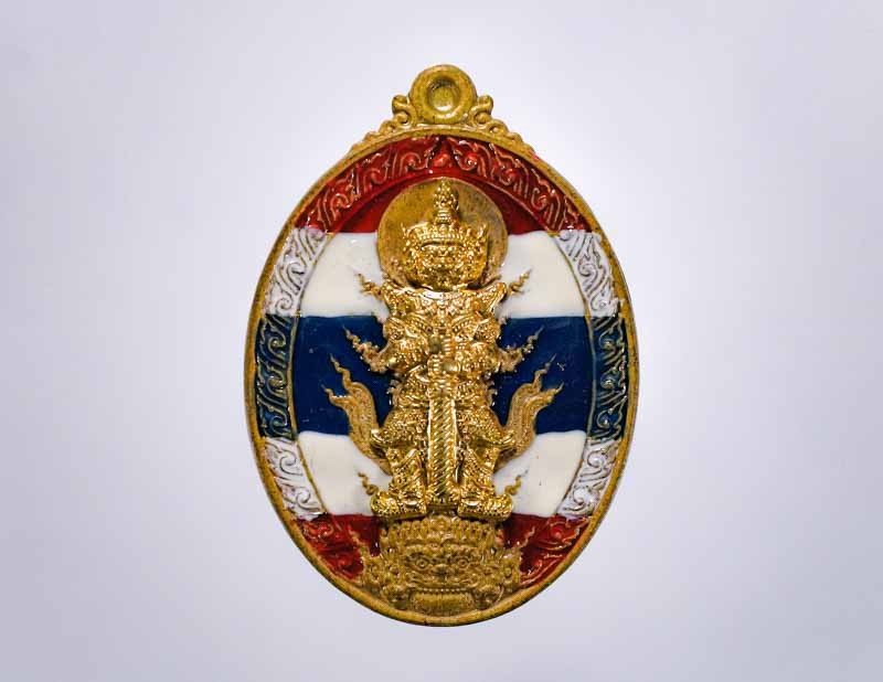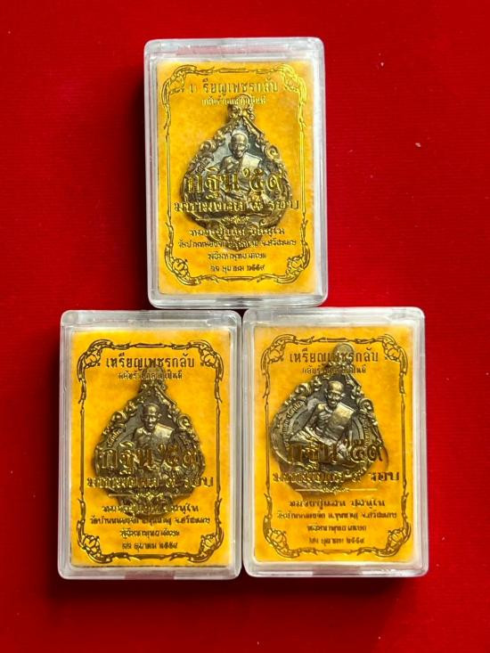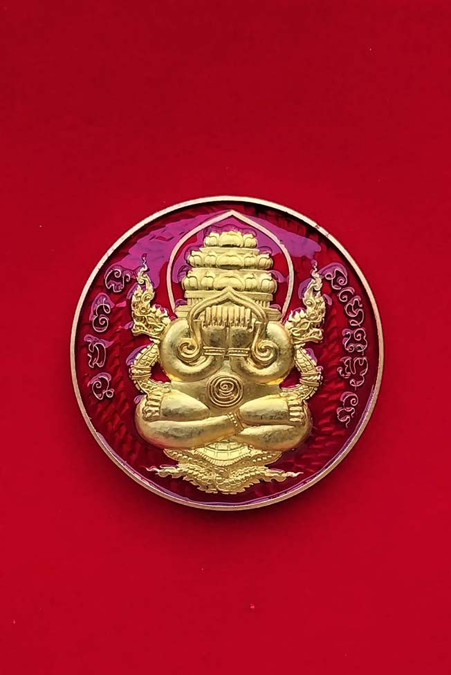 เหรียญพระปิดตาพังพระกาฬ หลังพหุรมาน หลวงปู่มหาศิลา สิริจันโท รุ่นรวยโชคอนันต์ เนื้อทองฝาบาตร ลงยาแดง no.7 แยกจากชุดกรรมการลงยา กล่องเดิม |