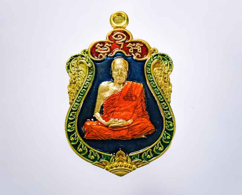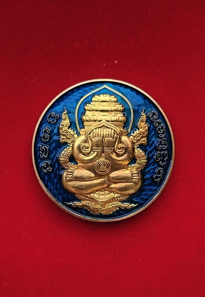 เหรียญพระปิดตาพังพระกาฬ หลังพหุรมาน หลวงปู่มหาศิลา สิริจันโท รุ่นรวยโชคอนันต์ เนื้อทองฝาบาตร ลงยาน้ำเงิน no.560 แยกจากชุดกรรมการลงยา กล่องเดิม |