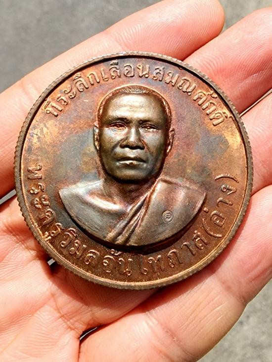 เหรียญเลื่อนสมณศักดิ์ เนื้ออัลปาก้า หลวงปู่ทองอินทร์ วัดกลางคลองสี่ ปี 2546 |
