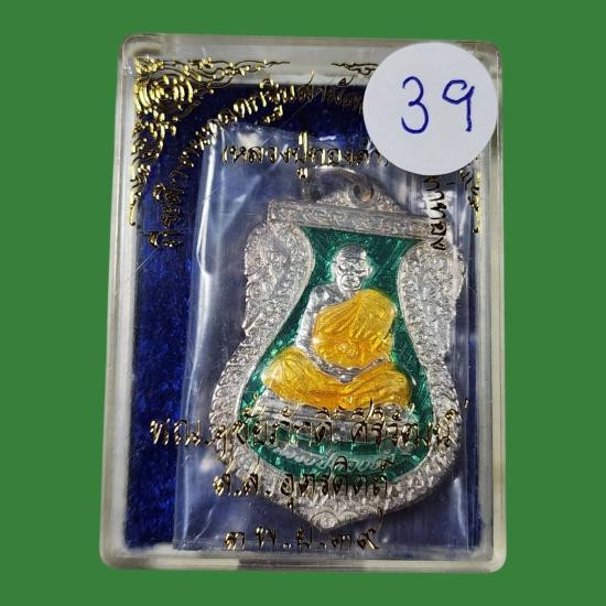 หลวงพ่อลออ วัดหนองหลวง เหรียญเสาร์ ๕ มหาลาภ ปี 2553 เนื้อเงินลงยาหน้ากากทองคำ เลข 71 มีจาร กล่องเดิม |