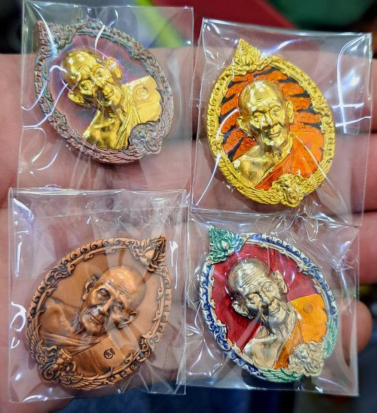 A3778.ยกคู่!! หลวงปู่ศุข พิมพ์ประภามณฑลรัศมี หลังยันต์ เนื้อชินตะกั่ว + วัตถุมงคล หลวงพ่อเจ็ก จนฺทปชฺโชโต วัดหนองเเก จ.ชัยนาท |
