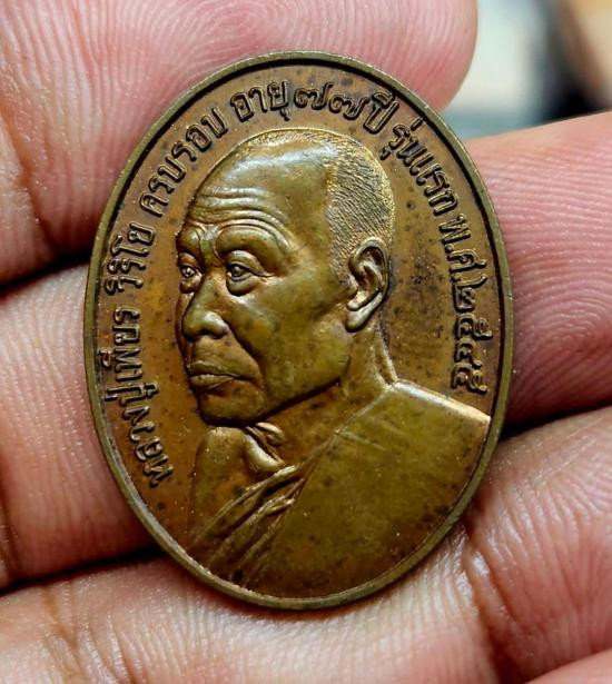 เหรียญตักบาตร รุ่นแรก รุ่น รวยเจริญทรัพย์ หลวงปู่ฝั้น วัดถ้ำศรีถมอรัตน์ จ.เพชรบูรณ์ |