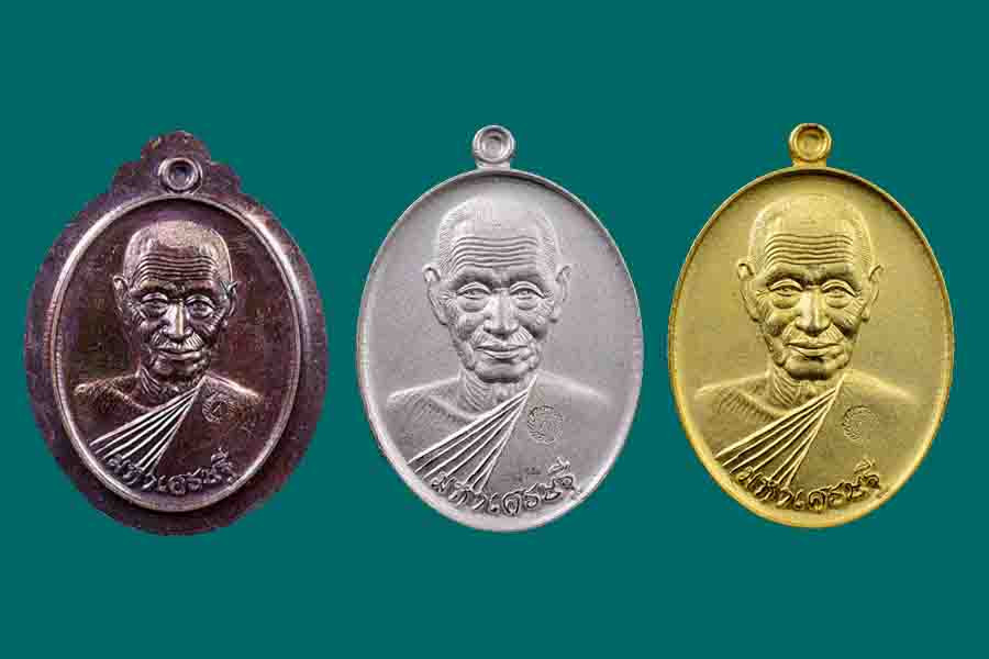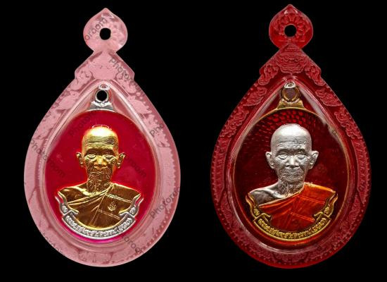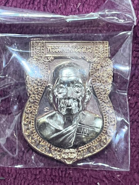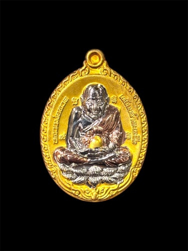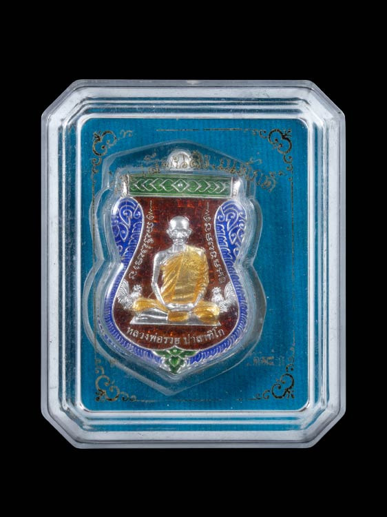 เหรียญหลวงพ่อรวย เนื้อเงินลงยา เลี่ยมทอง พร้อมบัตรรับรอง เปิดเคาะเดียว |