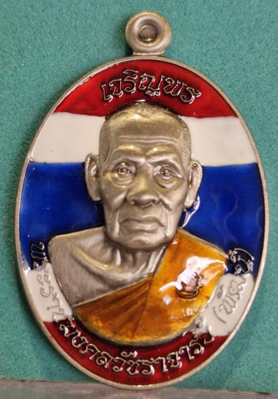 เหรียญแจกงานวันเกิด อายุครบ 91 ปี เลี่ยมกันน้ำพร้อมใช้ หลวงพ่อรวย วัดตะโก ปี 2554 |