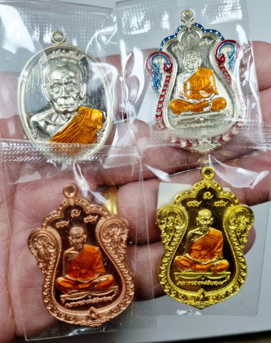 เลื่อนสมณศักดิ์ หลวงพ่อพัฒน์ คละเนื้อ 4เหรียญ พร้อมกล่อง |