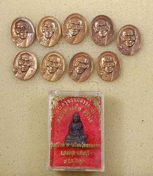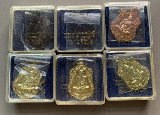 เหรียญ 6 เหรียญ + เลส 4 บาท รวย เพิ่ม พูน ปี 58 หลวงพ่อรวย วัดตะโก อยุธยา |
