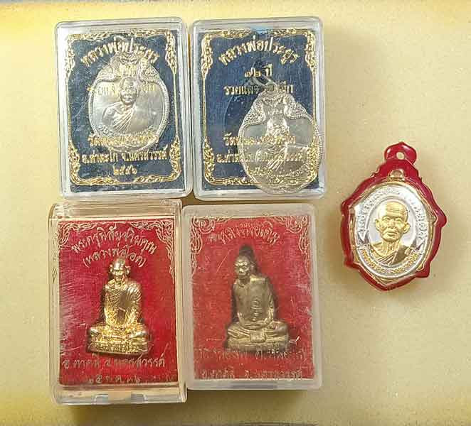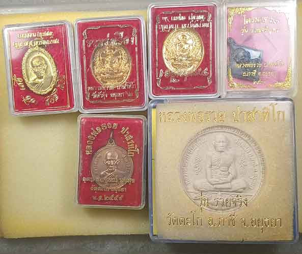 เหรียญ 5 เหรียญ +พระผงรูปเหมือน หลวงพ่อรวย วัดตะโก อยุธยา |
