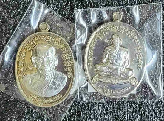 วัดใจ เหรียญสองขอบเจริญพร หลวงพ่อโปร่ง โชติโก วัดถ้ำพรุตะเคียน จ.ชุมพร เนื้อนวะโลหะ เลข9 |
