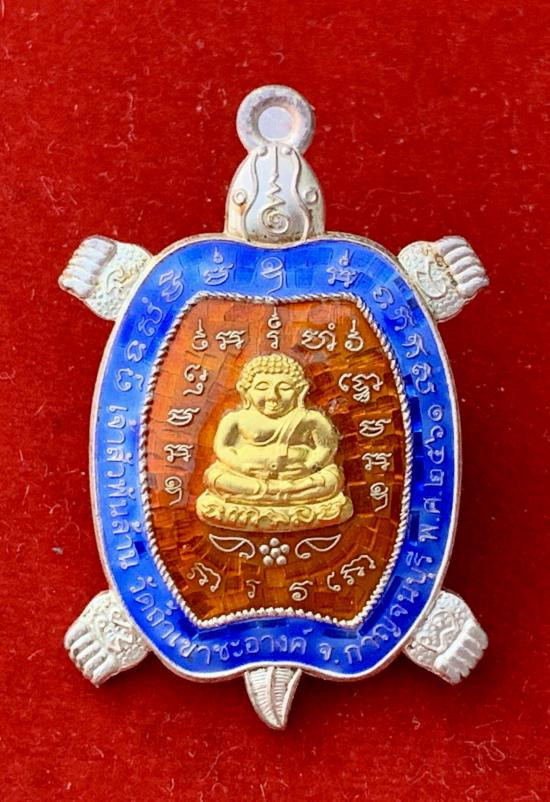 เหรียญเต่าเจ้าสัวพันล้าน หลวงปู่หลิว วัดถ้ำเขาชะอางค์ จ.กาญจนบุรี เนื้อเงินลงยาหน้ากากทองคำ |