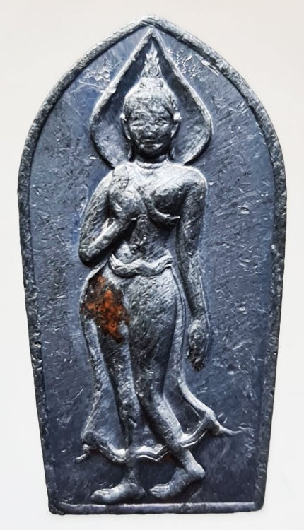 พระปรกใบมะขามรุ่นแรก พ่อมี วัดมารวิชัย พระนครศรีอยุธยา ปี ๒๕๓๕ เนื้อเงิน |