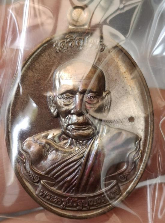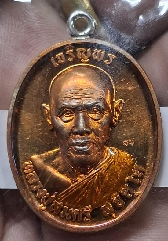เหรียญเจริญพรบน_หลวงปู่สมศรี สุจิตฺโต วัดป่าศรีสว่างธรรม จ.กาฬสินธุ์ เนื้อมหาชนวน ห่วงเชื่อมเงิน กล่องเดิม |