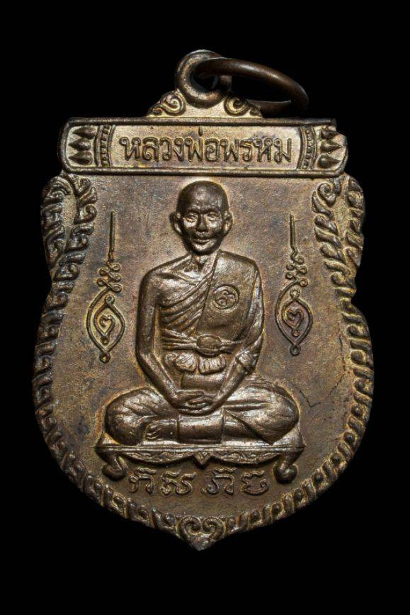 เหรียญอาร์มห้าเหลี่ยม หลวงพ่อเหลือ วัดสาวสะโงก เนื้อทองแดงรมดำ ปี2525 รุ่นเสาร์ห้า ตอกโค๊ต |