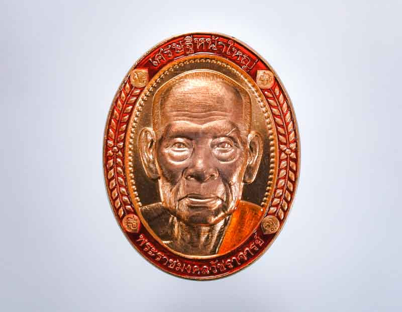 เหรียญพัดยศ หลวงปู่พิมพา ทองเหลืองลงยาสีแดง สวยมาก |