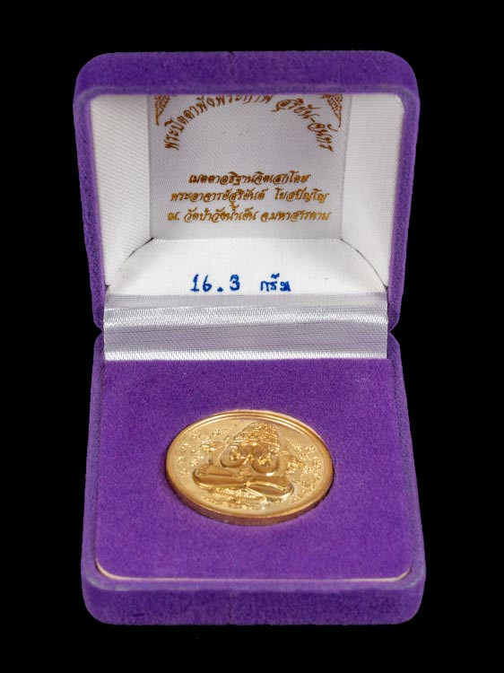 เหรียญพระพุทธ พระครูสุวรรณพัฒนกิจ พ่อ(ทอง สจฺจวโร) วัดลำกระดาน กรุงเทพมหานคร เนื้อชินตะกั่วทาทอง |