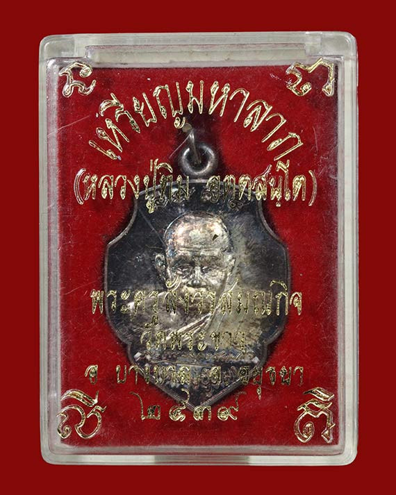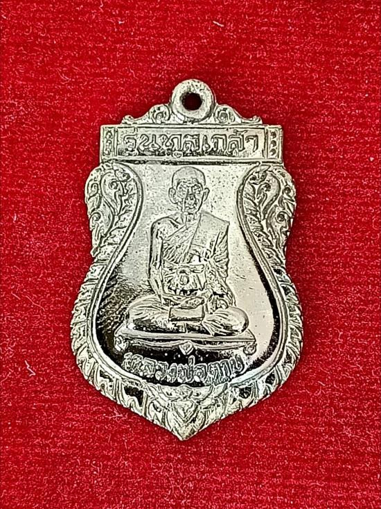 เหรียญเสมา ที่ระลึกสรงน้ำพระ หลวงพ่อปัญญา วัดกกกว้าว จ.นครสวรรค์ เนื้อนวะหน้ากากเงิน ขอบเงิน |