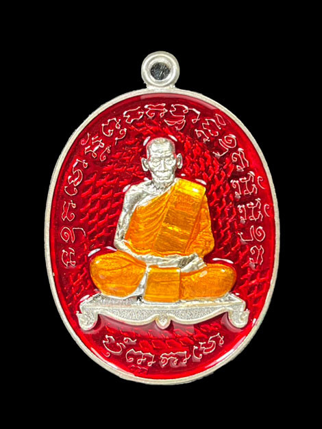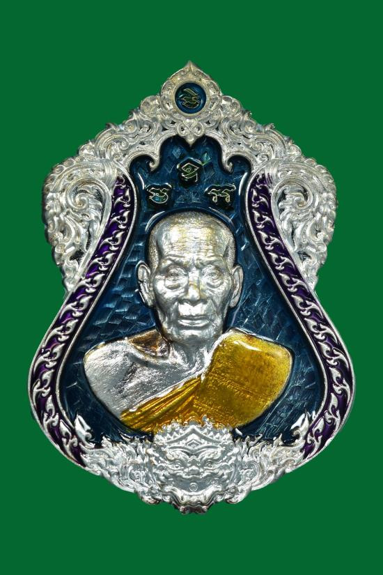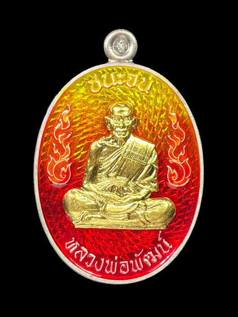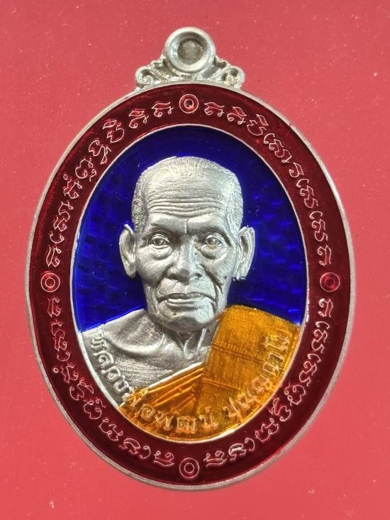 ''วัดใจ''เหรียญชนะจน หลวงพ่อพัฒน์ ปุญฺญกาโม วัดห้วยด้วน จ.นครสวรรค์ ปี2566 เนื้อเงินลงยาแดงไล่สี หน้ากากทองคำ หมายเลข 84 |