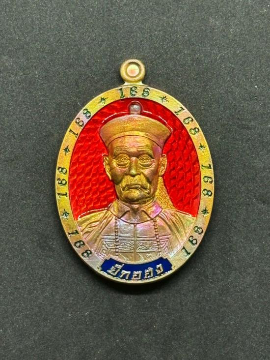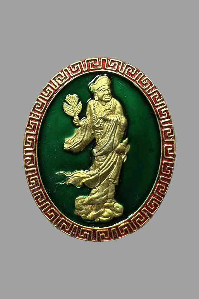 พระอรหันต์จี้กง จับหยี่กี หลังยันต์แปดทิศ วัดเล่งเน่งยี่ กะไหล่ทองลงยา |