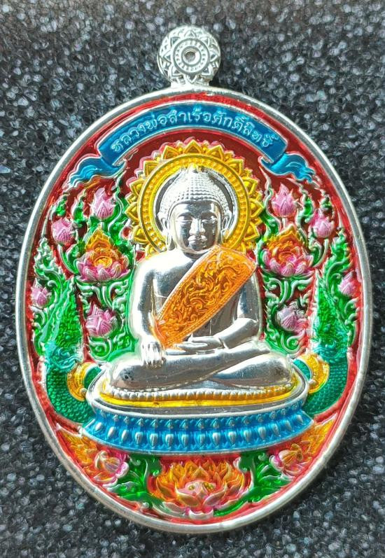 เหรียญหลวงพ่อสำเร็จศักดิ์สิทธิ์ วิหารฯจัดสร้าง พ.ศ.2558 เนื้อเงินลงยาหน้าทองคำ ตอก 2 โค๊ต ตอกเลข สภาพสวยกริ๊บ ซีนพลาสติกใสกล่องเดิม บัตรรับรองพระแท้การันตีพระ !! |
