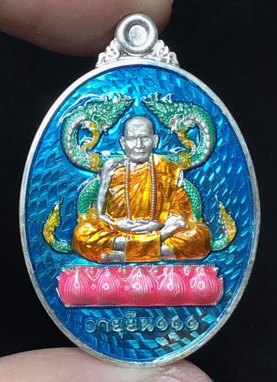 ''วัดใจ''เหรียญเจริญพร 2 หลวงพ่อพัฒน์ ปุญฺญกาโม วัดห้วยด้วน จ.นครสวรรค์ เนื้อเงินลงยาแดง พิมพ์เต็มองค์ หมายเลข 379 |
