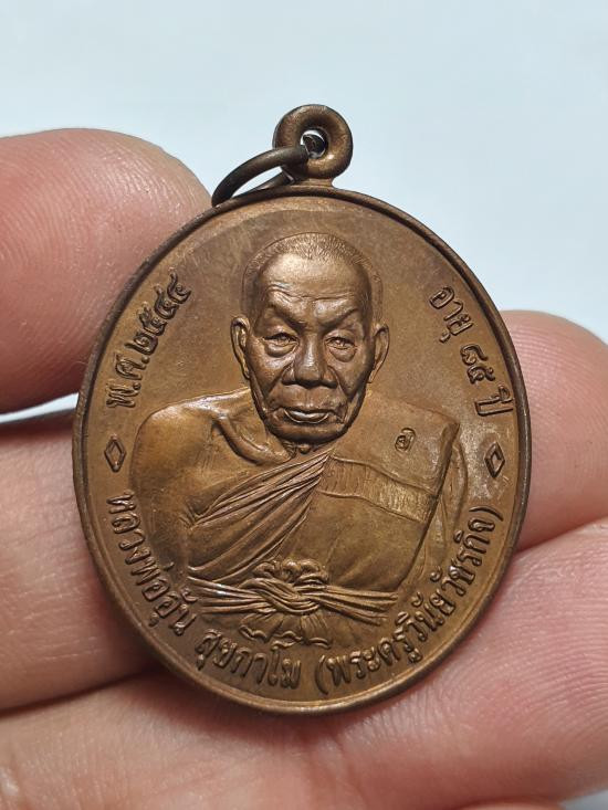 หลวงปู่ศุข เกสโร วัดปากคลองมะขามเฒ่า เหรียญห่วงเชื่อมย้อนยุคเนื้อทองแดง ครบรอบ ๑๐๐ ปีมรณกาล โดยวัดปากคลองมะขามเฒ่า จัดสร้างเอง |