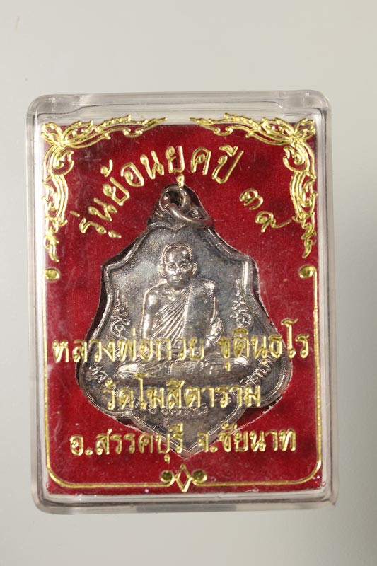 เหรียญหลวงปู่บุดดา ถาวโร วัดกลางชูศรีเจริญสุข จ.สิงห์บุรี (รุ่นพิเศษ-เทพเจ้าแห่งความร่ำรวย สภาพสวย หายาก นิยม กล่องเดิม) |