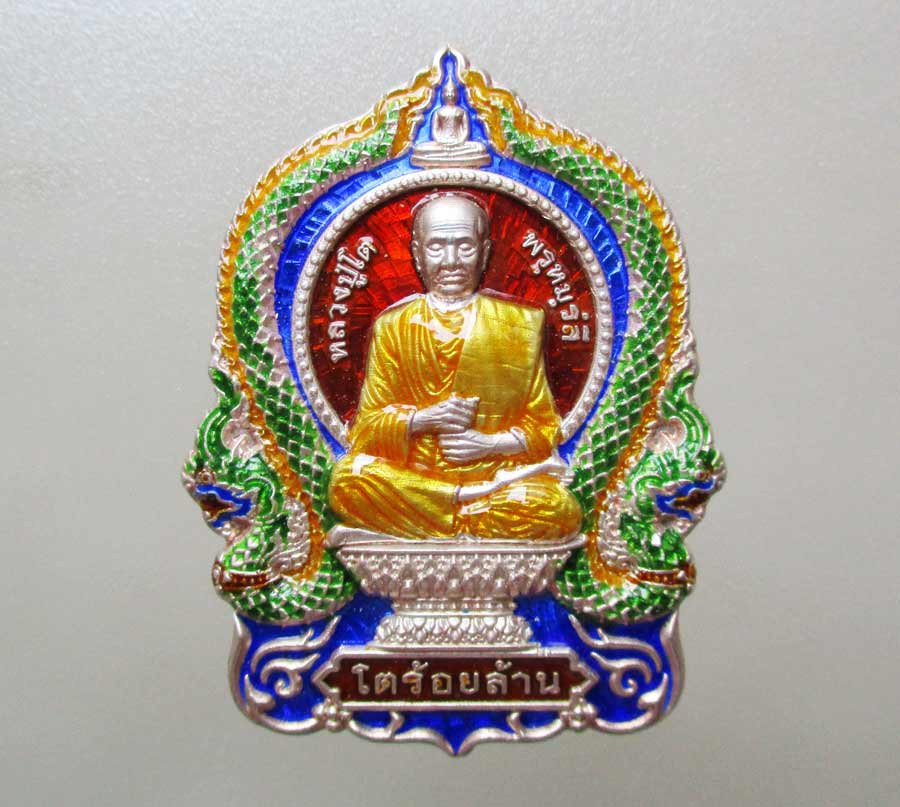 เหรียญหลวงปู่โต พรฺหมฺรํสี นั่งพาน รุ่นโตร้อยล้าน วัดหินแท่นลำภาชี กาญจนบุรี พ.ศ.2563 เนื่อเงินลงยา 4 สี ตอก 2 โค๊ต ตอกเลข สภาพเหรียญสวย !! |