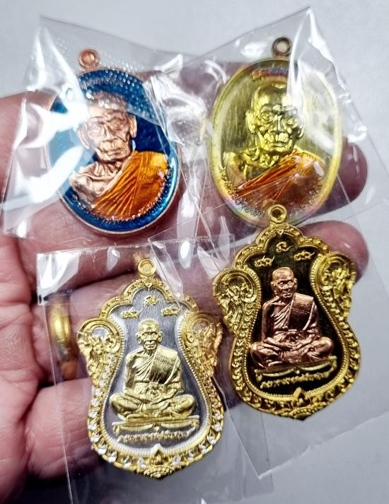 เลื่อนสมณศักดิ์ หลวงพ่อพัฒน์ คละเนื้อ 4เหรียญ พร้อมกล่อง |